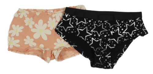 2x kalhotky- černé s hvězdami + růžové květovamé