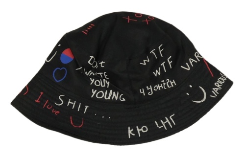 Černý klobouk s barevnými nápisy