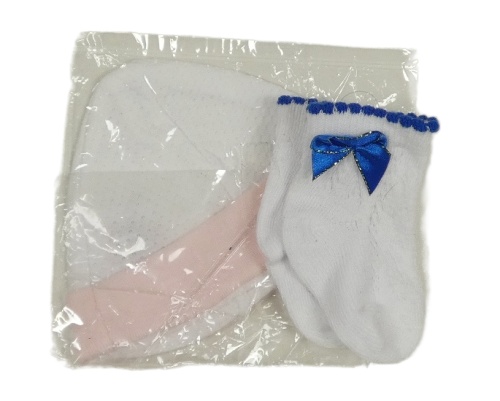 Nové - 2set - Bílo-růžová čepice + bílo-modré ponožky