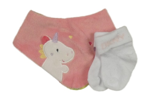 2set - Růžový plyšový slinták s jednorožcem + bílé ponožky