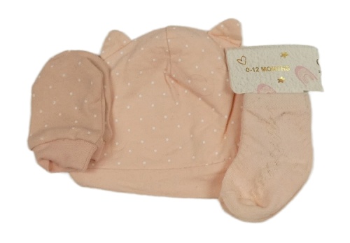 3 set - růžová puntíkatá čepice + rukavice + světlerůžové ponožky