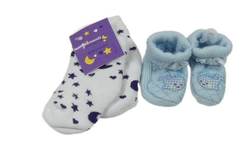 • Nové - 2x - Ponožky - Bílé teplé s hvězdičkami a měsíci Johnson's, světlemodré s velrybou
