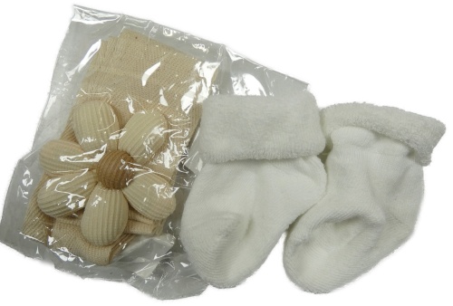 Nové - 2Set - Světlebéžová zavazovací čelenka s 3D květem + bílé teplé ponožky
