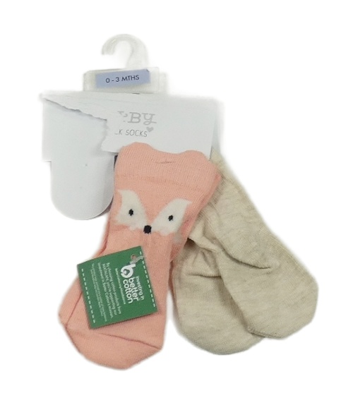 Nové - 2x ponožky - růžové s liškou + béžové melírované s medvědem Matalan