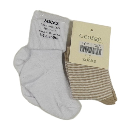 • Nové - 2x - Bílé + béžovo-bílé pruhované ponožky George