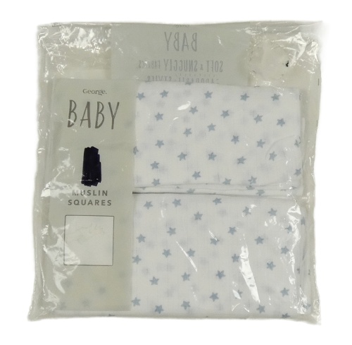 Nové - 2x - Bílá mušelínová plena s modrými hvězdičkami George