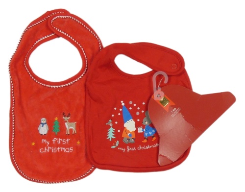 Nové - 2x - Červený vánoční bryndák s obrázky Jojo Maman Bébé + M&S