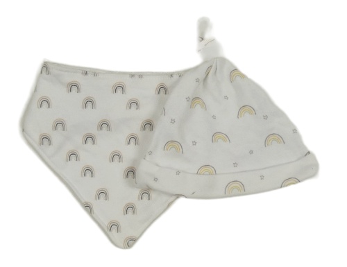 2set - 1x Bílá čepice s duhami + 1x bílý slinták s duhami