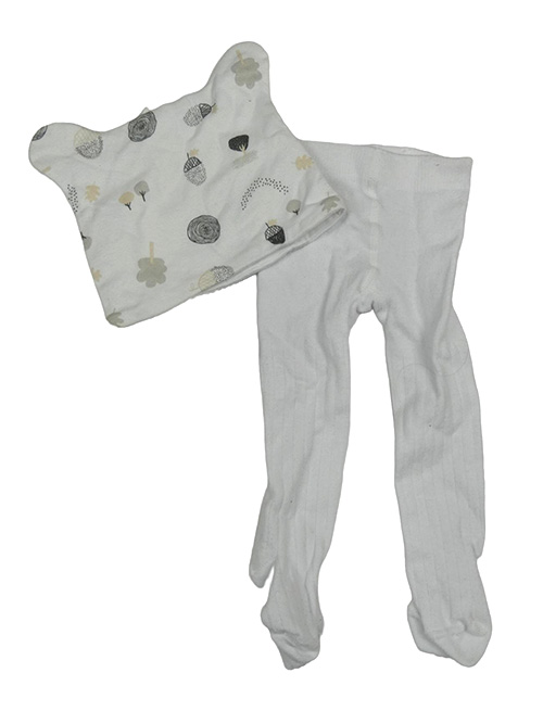 2 set - bílé punčocháče + bílá čepice s obrázky