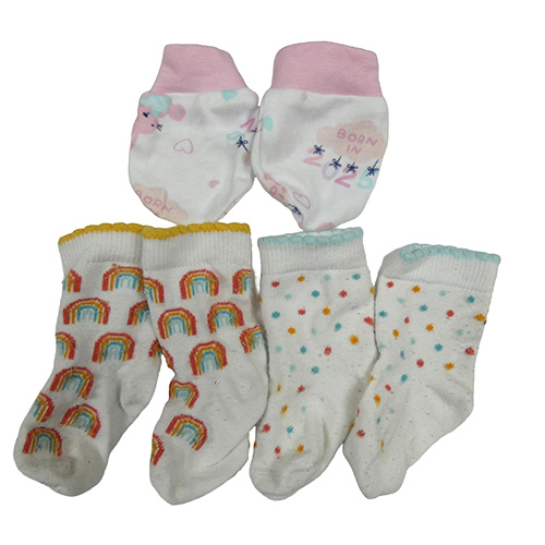 3 set - 2x bílo-barevné ponožky + bílo-růžové bavlněné rukavice