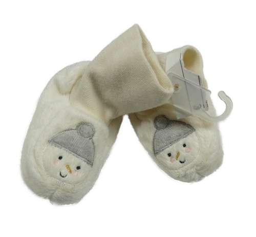 Nové - Smetanové plyšové zateplené capáčky se sněhulákem