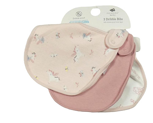 • Nové - 3x slinták - růžový s jednorožci a myškami + bílý + starorůžový Primark