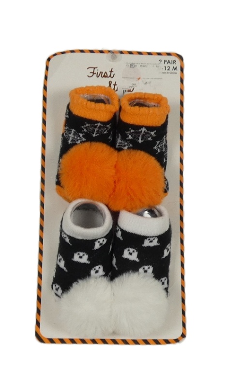 • Nové - 2x - Ponožky s bambulí - Černo/oranžové s pavučinkami, černo/bílé s duchy First steps