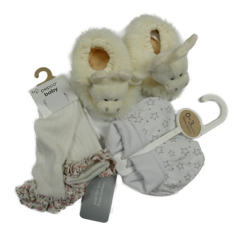 Nové - 3set - Bílé bavlněné capáčky + smetanové chlupaté capáčky + bílé podkolenky vel. 0-15