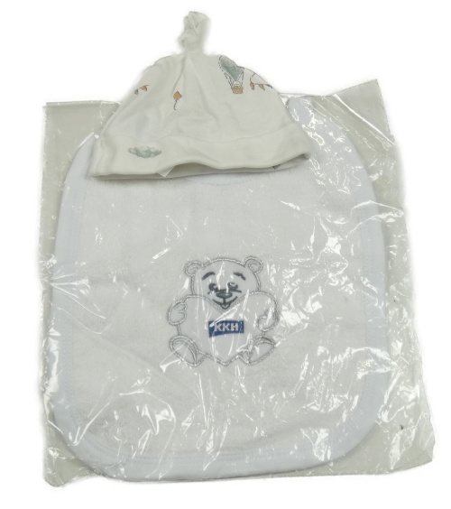 • 2set- bílá čepice s obrázky+ bílý froté bryndák s medvědem
