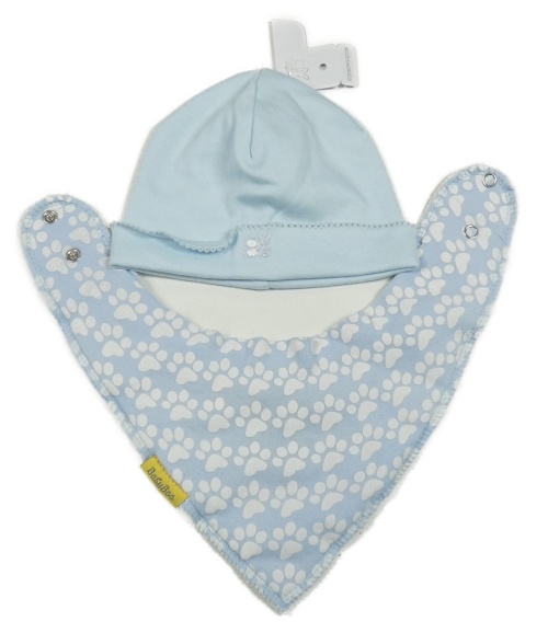 Nové - světlemodrá čepice s výšivkou + modrý slinták s tlapkami