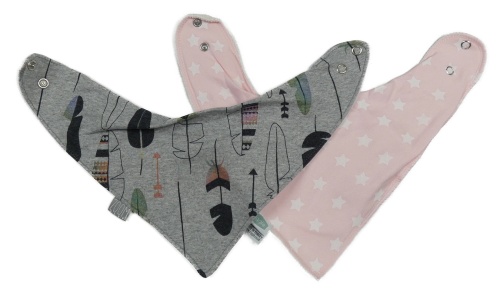 2x - Světlerůžový s hvězdičkami + šedý slinták s pírky