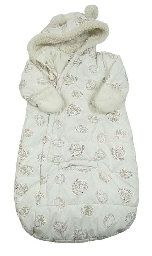 Bílý šusťákový zimní fusak do autosedačky s ježky a kapucí C&A