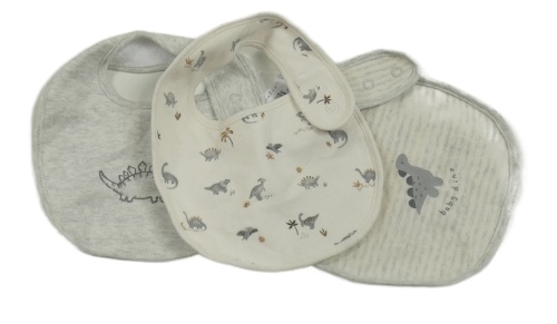 • 3x bryndák s dinosaury světlešedý+ smetanový+ pruhovaný Next