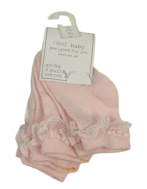 Nové - 3x růžové ponočky s krajkovým volánem Next