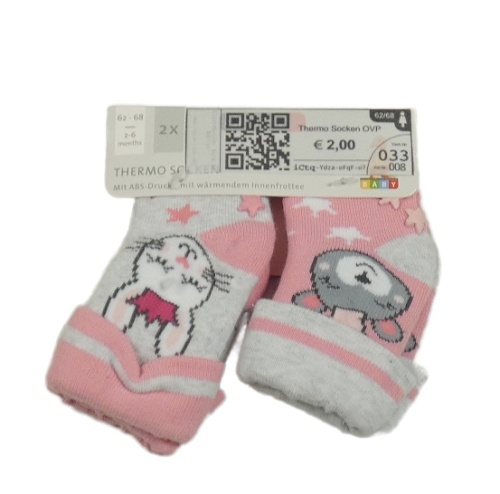 • Nové - 2x thermo ponožky - růžové s medvědem + světlešedé melírované s králíkem