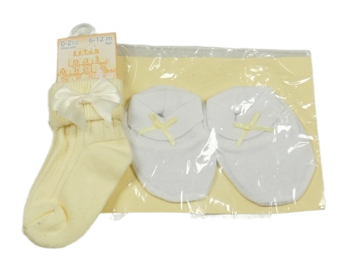 2set- žluté ponožky s mašlí+ bílé capáčky