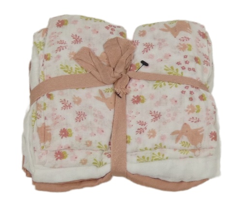 Nové - 3x mušelínová plena - bílá květovaná s králíky + bílá + starorůžová Lily & Dan