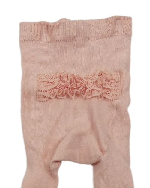 Světlerůžové punčocháče s krajkovými volánky