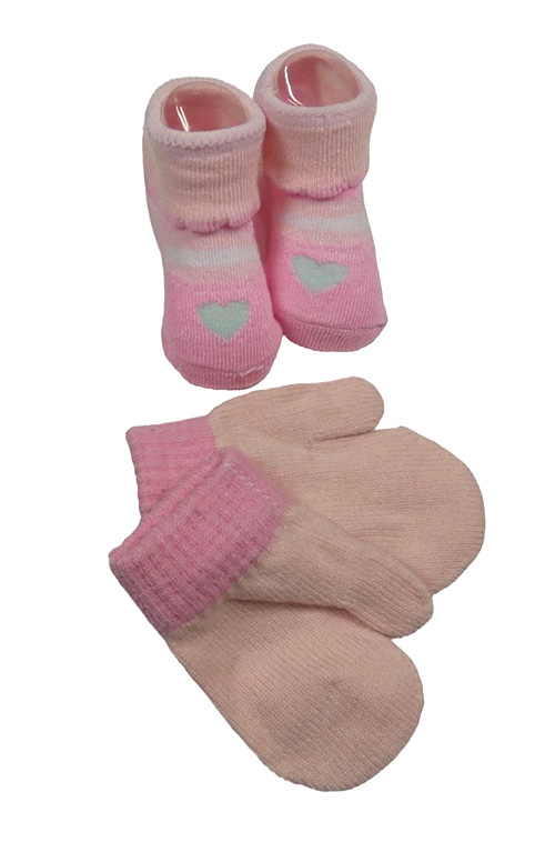 2set - Růžové ponožky se srdcem + palcové rukavice