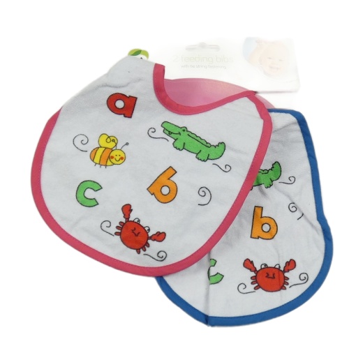 Nové - 2x - Froté bryndák s písmenky a zvířátky - Bílo-malinový/safírový baby pipkin