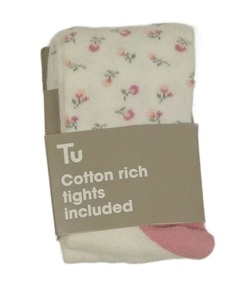 Nové - bílo-růžové punčocháče s kytičkami Tu