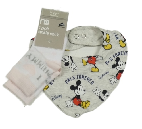 • Nové - 2set - Světlešedý slinták s Mickeym + bílo-růžové ponožky s nápisem a srdíčky