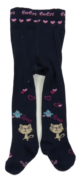 Tmavomodré punčocháče se srdíčky a kočičkami