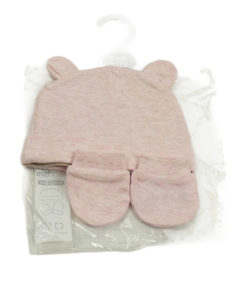 Nové - 2set - Růžová žíhaná čepička s oušky + rukavičky Primark