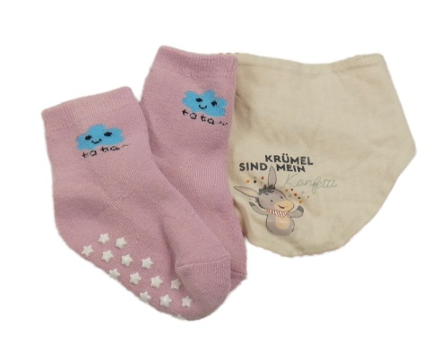 2set - Růžové ponožky s mrakem + béžový oboustranný slinták s oslem