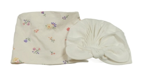 2set - smetranová bavlněná čepice s květinami a čepice s mašlí H&M