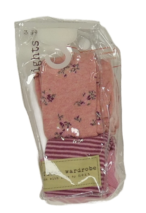 Nové - 2x punčocháče - růžové květované + růžové pruhované Next