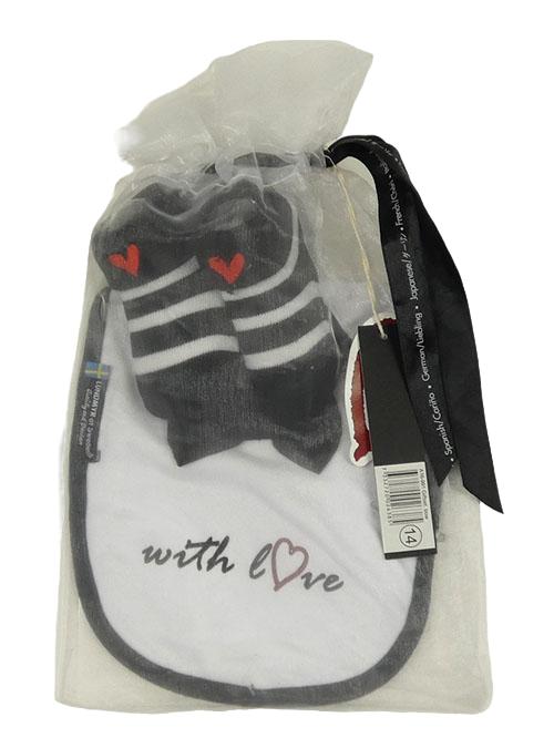Nové - 2set - Bílý slinták s nápisem + černo-bílé pruhované ponožky se srdcem