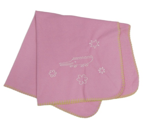 Růžová fleecová deka s krokodýlem a kytičkami