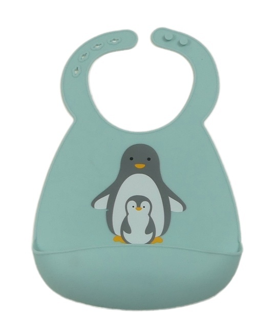 • Světlemodrý gumový bryndák s tučňáčky a kapsou