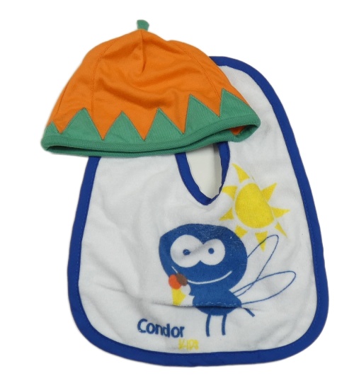 2Set - Bílo/safírový froté bryndák s obrázkem + oranžovo/zelená čepice - dýně F&F