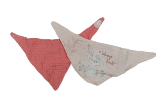 2set - 2x mušelínový slinták - růžový + světlerůžový s králíčkem