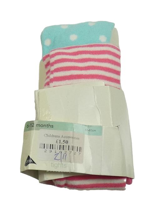 Nové - 2x punčocháče - modré puntíkaté + bílo-růžové pruhované George