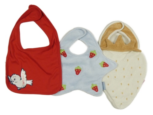 3x bryndák červený s ptáčkem+ modrý s jahůdkami+ smetanovo-béžový