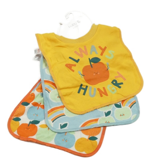 Nové - 3x - Žlutý + světlemodrý + oranžový bryndák s jablíčky Tu