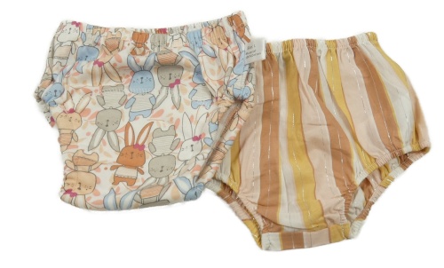 • 2set - Bílo-barevné tréninkové kalhoty s králíčky + bílo-žluto-béžové pruhované kalhotky pod šaty