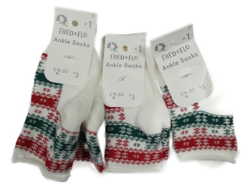 • Nové - 3x - Bílo-tmavočerveno-smaragdové teplé ponožky s vločkami F&F