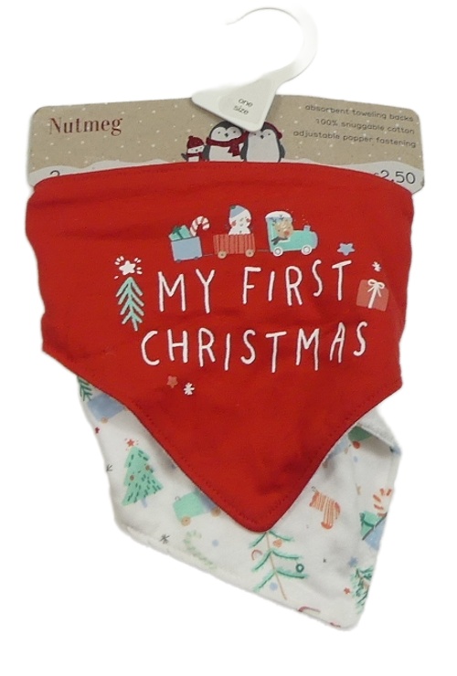 • Nové - 2x slinták - Červený s nápisem a vlakem + bílý s vláčky Nutmeg