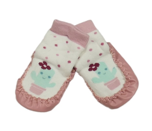 Nové - Bílé ponožky s kaktusem a růžovou koženkovou podešví vel. 18-19