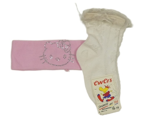Nové - 2set - růžová čelenka s Hello Kitty + bílé ponožky s krajkou